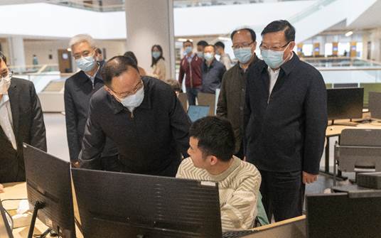 新校区,听取了网安学院党委书记沃闻达关于该院高层次人才引进、人才培养、科学研究以及校企合作等方面情况的汇报,观览了部分代表性科研成果。