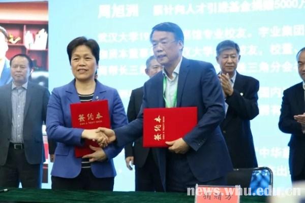 “今天的捐赠签约仪式,是武大和校友合作的又一盛举。”窦贤康在讲话中表示,去年是人才强校年,学校人才工作取得丰硕成果。人才强校战略将作为学校的长期战略之一,在不断提升高层次人才规模的同时,更加侧重基础学科、主流学科和交叉学科,依托大平台、高端平台,加强优秀、拔尖人才的培养。未来5年,武大将力争引进20至30名顶尖科学家和文科知名专家、300名左右优秀中青年人才,并为他们量身打造科研教学需要的平台。