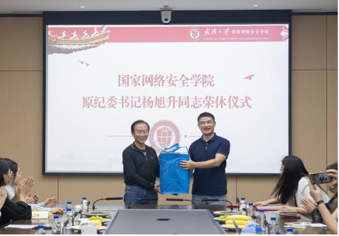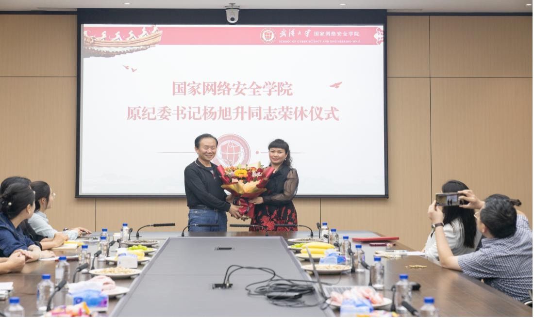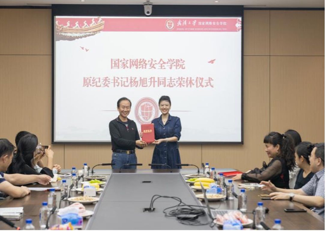 第一位光荣退休的学院原纪委书记杨旭升老师举行荣休仪式。学院全体在汉领导、教师代表及内设机构副主任及以上干部参加,党委副书记瞿成雄主持仪式。