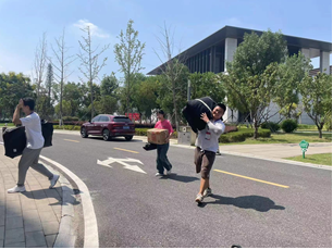 一班班迎新班车往来于武大本部和网安基地,一批批新生感受珞珈山和网安基地双校区的热情。研究生辅导员刘路、石川和志愿者同学们在网安基地迎接同学们。