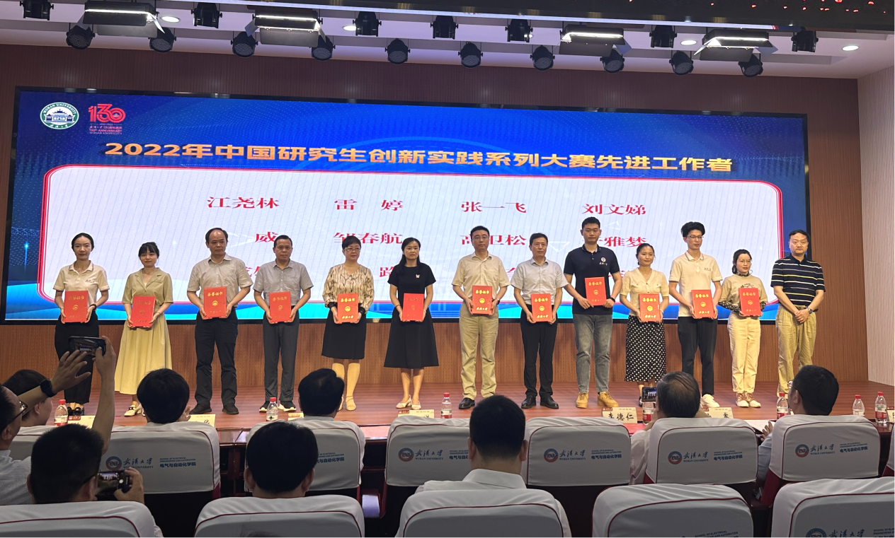 2022年中国研究生创新实践系列大赛先进集体”, 陈晶、任延珍、王丽娜、王正、汪润、赵磊获评“优秀指导教师”,瞿成雄、刘路、文贝西获评“先进工作者”。