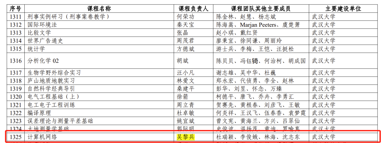 吴黎兵教授主持的《计算机网络》获批国家级线下一流本科课程。