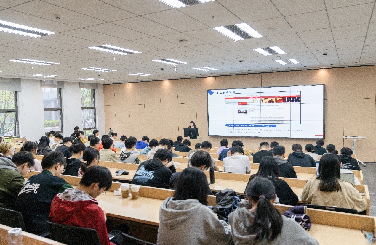 (学工办 洪伟)4月13日12:30,学院召开本年度首场本科生生涯规划经验分享会。院党委副书记刘嘉梅、教学办主任程媛、教学秘书鄢炜、丰存霞和2020级120余位学生参加分享会。会议由本科生辅导员洪伟主持。
