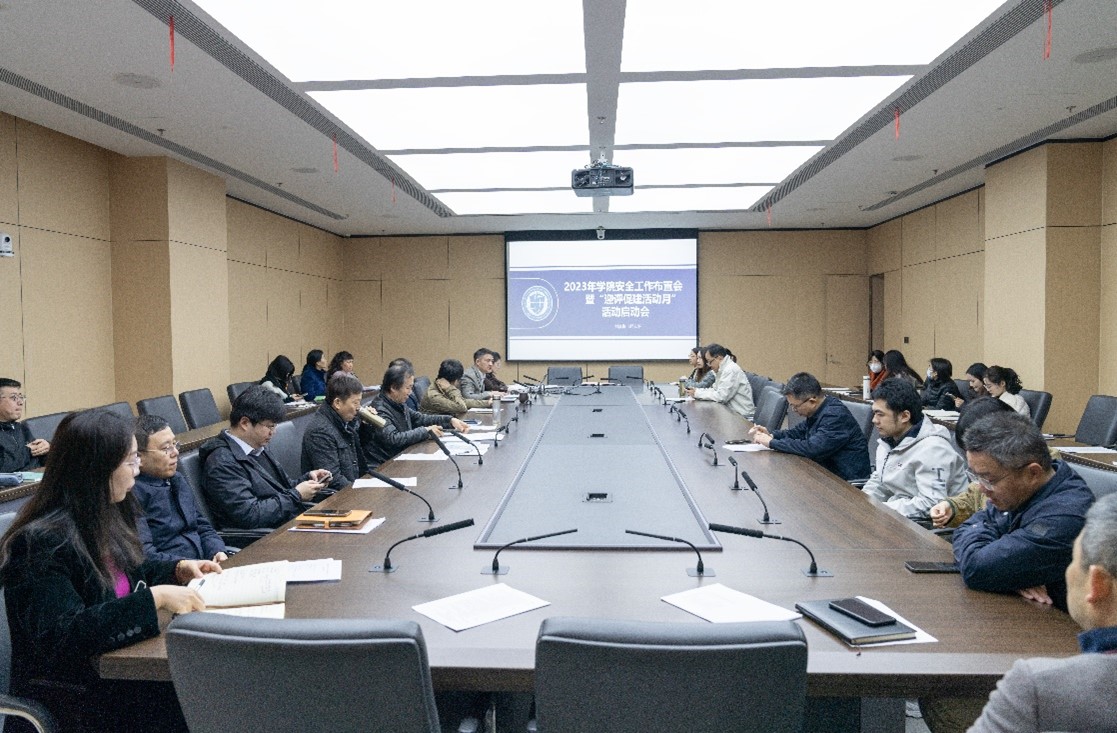 (党政办 陆一)3月20日,学院在新珈楼A208会议室召开了2023年全院安全工作布置会暨“迎评促建活动月”启动会,对2023年度安全工作进行部署,全体院领导、办公室、教学实验中心全体教职工、部分教师和学生代表参加会议。会议由副院长彭正明主持。