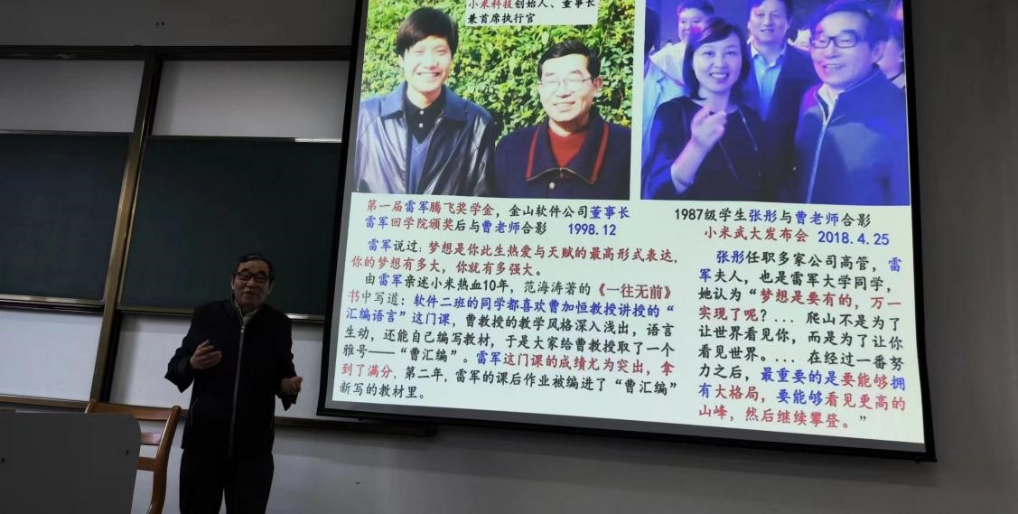 “学习的过程不会是一帆风顺的,要有不畏惧困难的勇气,树立远大理想,坚定一往无前。”“学好汇编语言将从底层完整的理解计算机”……曹加恒老师分享了雷军在武大学习时期的小故事,希望同学们向大师兄学习,努力攀登人生高峰。
