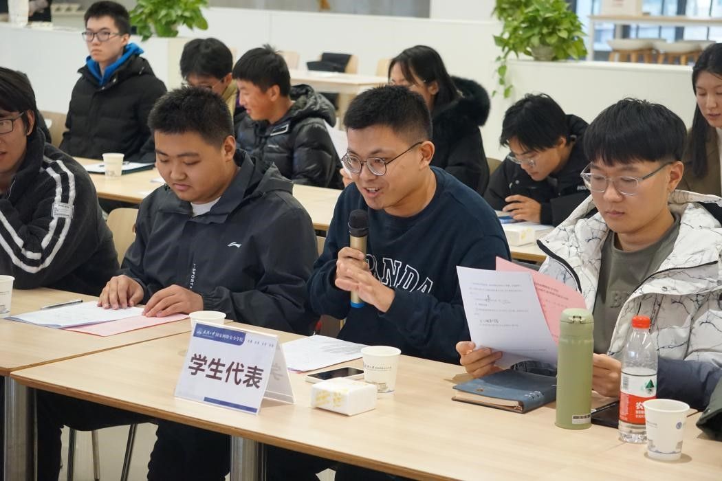 党委副书记刘嘉梅介绍问题征集情况。通过前期面向全院同学意见征集,共收集到问题意见26份,内容以本科各年级教育教学为主,涉及竞赛政策、升学就业、生活服务等多个方面。随后,副院长彭国军,副书记刘嘉梅,党政办主任郑艺,以及与会老师、运营方负责人针对问题逐一回复。