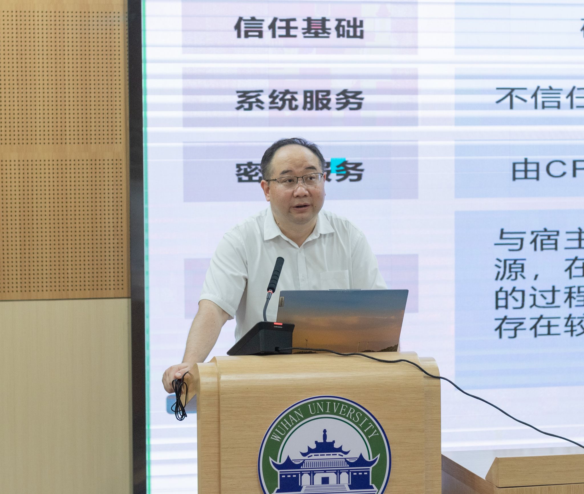 党委书记赵波教授在“可信的机密计算环境构造的思考”的报告中提到,所带领的学术团队正在研究利用可行计算的方法,构造一种开源的、不依赖于CPU的第三方,即可信的机密计算环境,以解决目前安全操作系统工作中的困境和适应当前的安全需求。