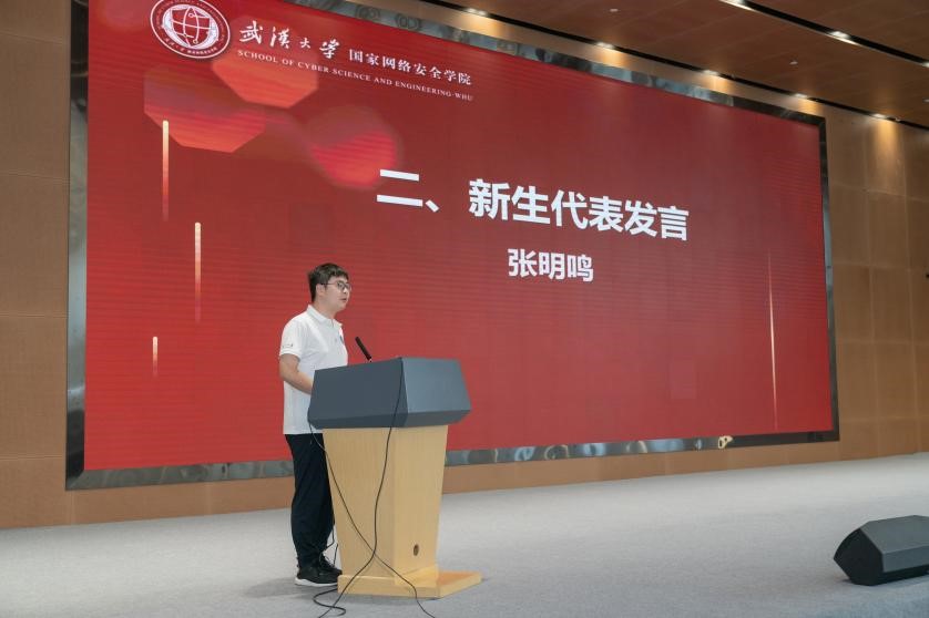 接下来,新生代表张明鸣以“秉初心之志,担网安之责”为题,表达了对网安基地研途开启的期待与憧憬,强调了青年一代在国家网络安全事业中的责任与使命。他提出在面对未来挑战时,要不忘初心,勇攀科研高峰,以坚定的信念和拼搏的精神,在网安基地书写青春篇章,成就更好的自己,不负时代,不负韶华。