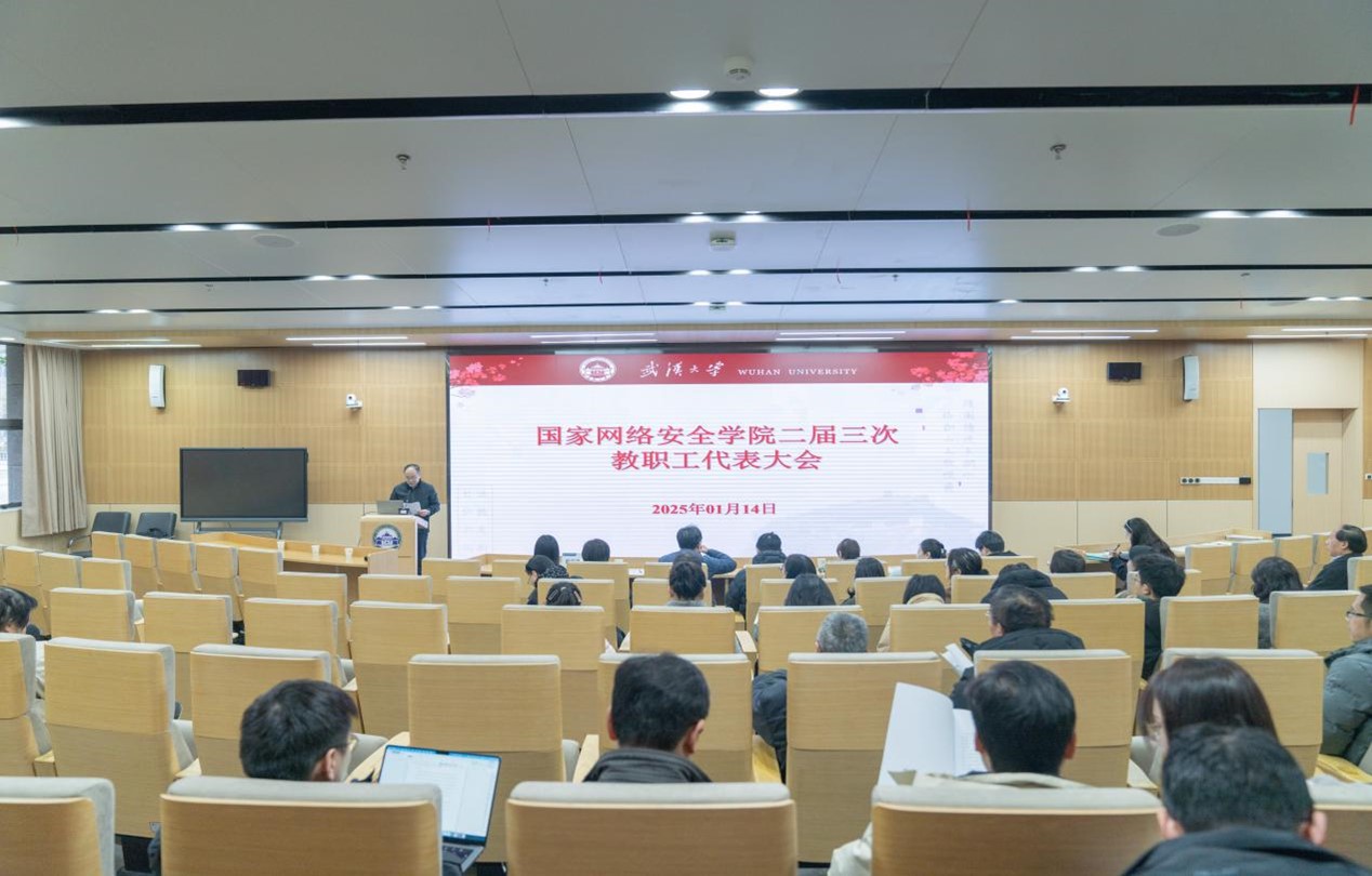 (通讯员 郑艺) 2025年1月14日下午3:00,学院二届三次教代会在网安基地新珈楼B101报告厅隆重召开。校工会副主席刘赛男、院教代会代表出席本次会议,会议由院党委书记赵波主持。