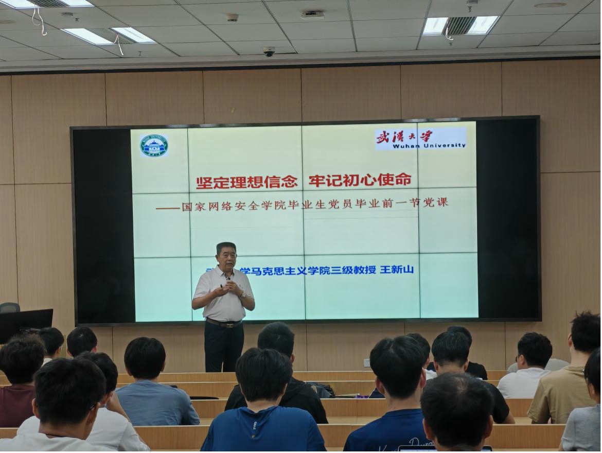 (通讯员 郭鑫宇 文贝西) 6月17日下午,马克思主义学院王新山教授来到网安基地,为学院毕业生党员带来主题为“坚定理想信念,牢记初心使命”的专题党课。本次课程围绕坚定理想信念、牢记中央八项规定、争当强国卫士四方面展开,为即将踏入社会的青年党员筑牢思想防线,指明奋进方向。