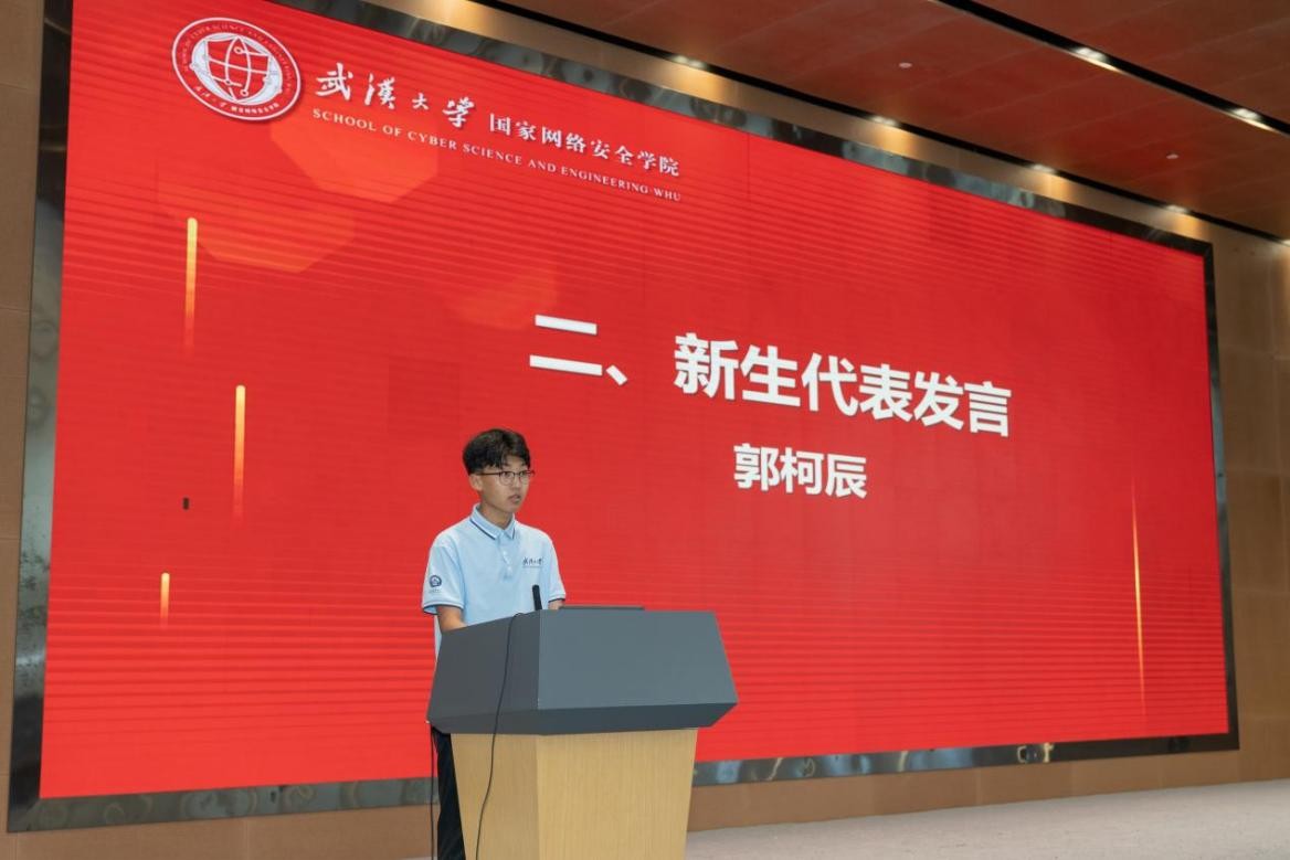 新生代表郭柯辰回顾本科毕业后赴新疆支教的难忘经历,这段经历让他深知责任担当的分量。如今他带着被边疆沉淀的家国情怀重返珞珈,开启网安研途。他深知研途挑战重重,会珍惜时光、精进本领。展望未来,他牢记总书记嘱托、铭记校训,愿做“螺丝钉”,投身网络强国建设,不负时代使命。