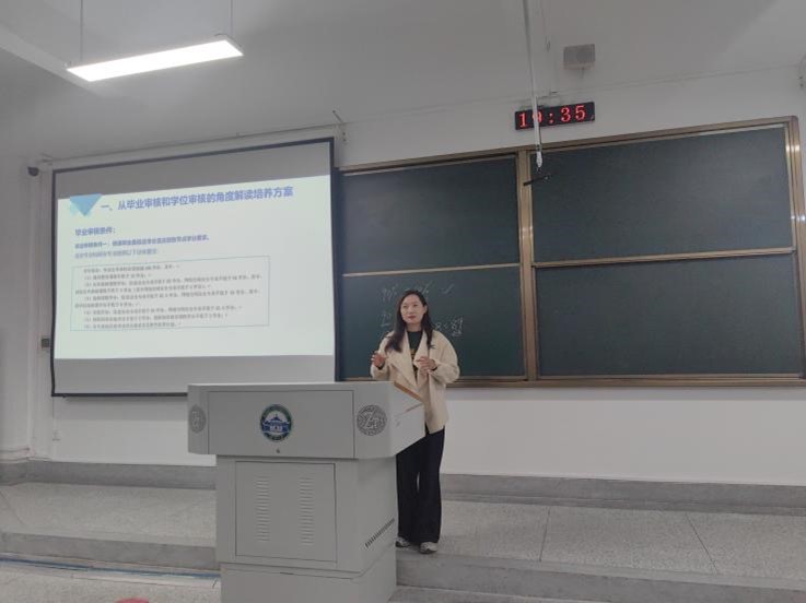 教学管理办公室副主任代永平、李津共同聚焦本科生教学方面政策,结合学院专业特色,对人才培养方案、毕业审核要求、选课规则、学分认定等内容进行细致介绍,针对新生的常见问题逐一说明,帮助新生清晰掌握教学管理相关规定。