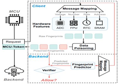 嵌入式设备逐渐走进了人类生活,出现在我们生活的方方面面。然而,传统基于令牌(Token)的认证面临着严重的令牌伪造风险。作者结合IoT设备的实际场景,探讨了“如何在不安全的信道下提供安全可靠的设备身份认证”这一问题。作者首先系统调研了IoT设备上的硬件指纹信息,对硬件指纹进行了挖掘与归类。其次,基于硬件指纹,作者利用消息映射、数据投毒等手段为每一条用户指令生成特定的访问令牌,实现了指令级别的令牌绑定。在完成认证的同时,可以成功抵御中间人篡改攻击、硬件模仿攻击、软件模仿攻击等各类攻击。作者在3种共计60台不同设备上进行了实验,认证正确率达到97%。在抵御不同攻击的防御效果上,攻击者篡改攻击的成功率低于0.1%,硬件模仿攻击的成功率低于10%,软件模仿攻击的成功率低于2%。实验结果显示了设计方案的安全性和有效性。本成果原文、论文代码、分享录像已在网上公开,详情请见//nisplab.91-anw.com/Publications.htm。
