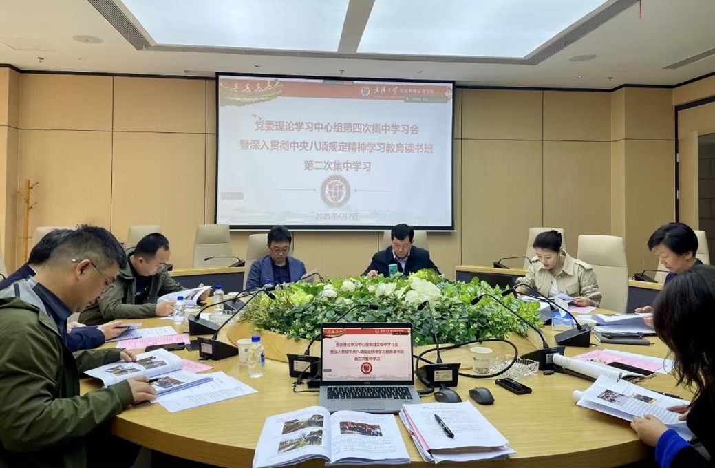 (通讯员 刘路) 4月7日下午,学院党委理论学习中心组开展深入贯彻中央八项规定精神学习教育读书班第二次集中学习研讨。学院党委委员、班子成员参会,会议由学院党委书记李良俊主持。