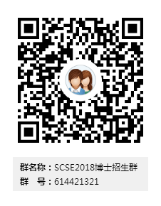 各候选考生请申请加入“SCSE2018博士招生群”,申请格式:报考专业-姓名-初试分数,如“网安-张三-60”。进群后,请按“专业-姓名”修改群名片,如“网安-张三”(否则清理出群),群二维码如下: