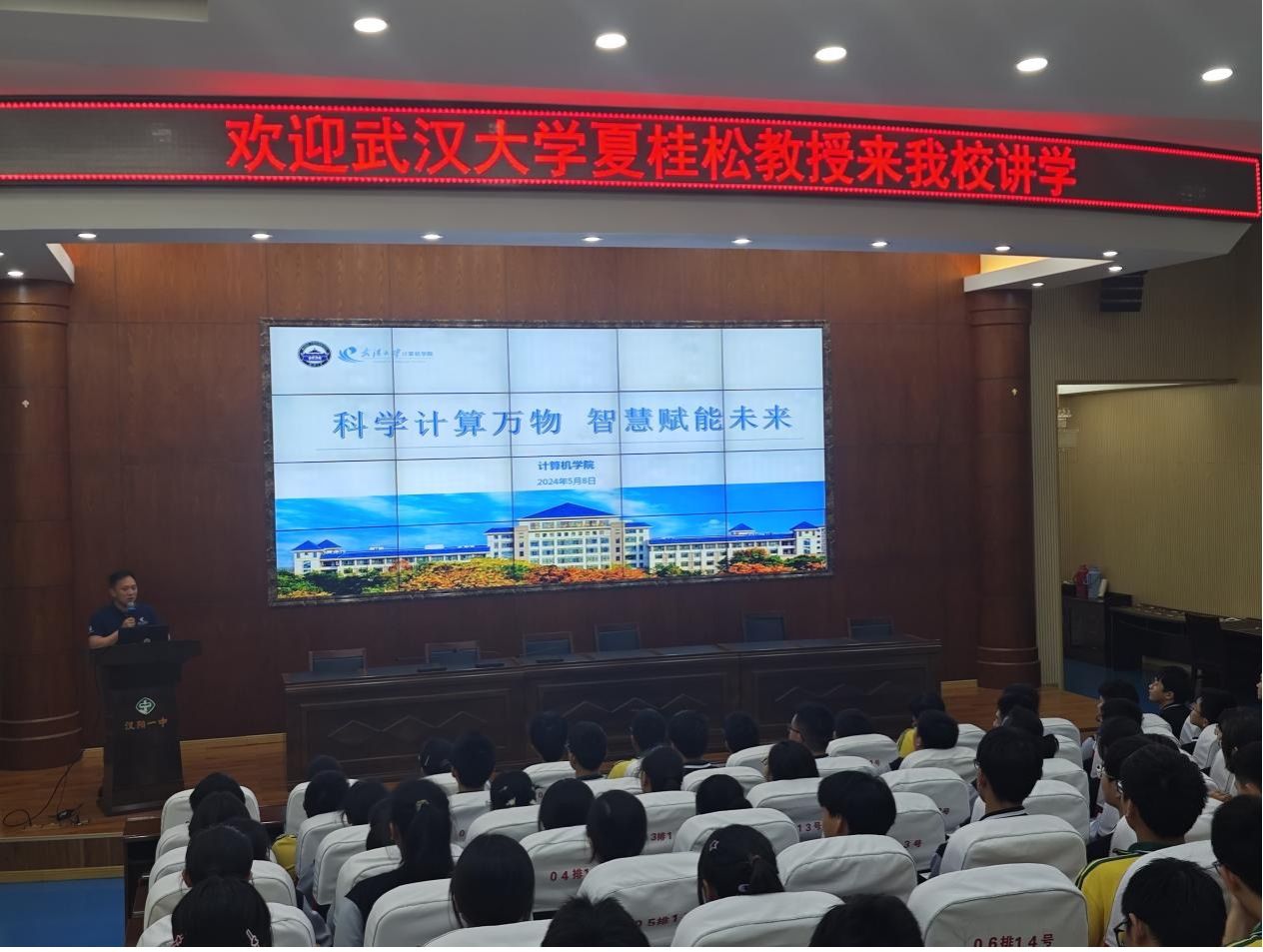 夏桂松教授为高一年级的部分学生做作《科学计算万物 智慧赋能万物》主题讲座。夏教授介绍了计算机学院基本情况、以雷军班为代表的专业特色以及91暗网